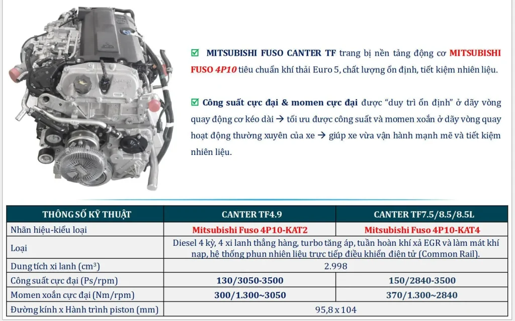 | Tên động cơ | Mitsubishi Fuso 4P10 – KAT4 | |