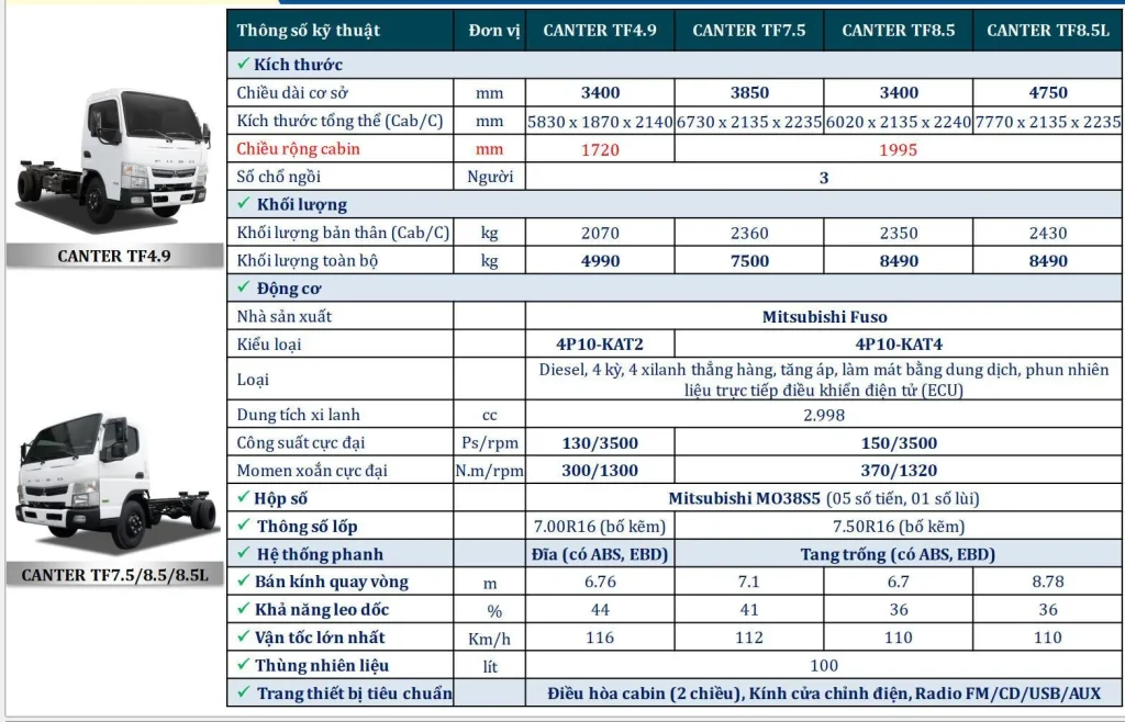 1. Giới thiệu xe Canter TF7.5, TẢI 3.49 TẤN, Thùng 5m2