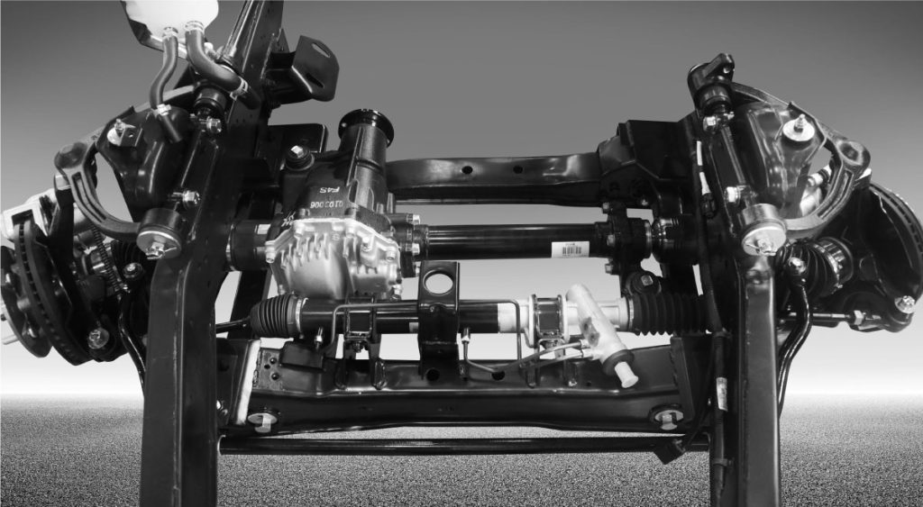 Cầu trước và cầu sau: Dầm thép hàn có độ bền cao, khả năng chịu tải lớn.