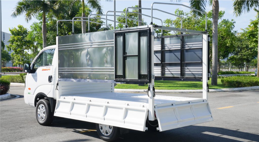 KIA K200S-4WD có thể được đóng nhiều loại thùng tùy theo nhu cầu sử dụng: thùng lửng, thùng kín, thùng mui bạt, v.v. Thùng tiêu chuẩn dài khoảng 2.9 mét, phù hợp để chở hàng hóa nhẹ, cồng kềnh hoặc nông sản.
