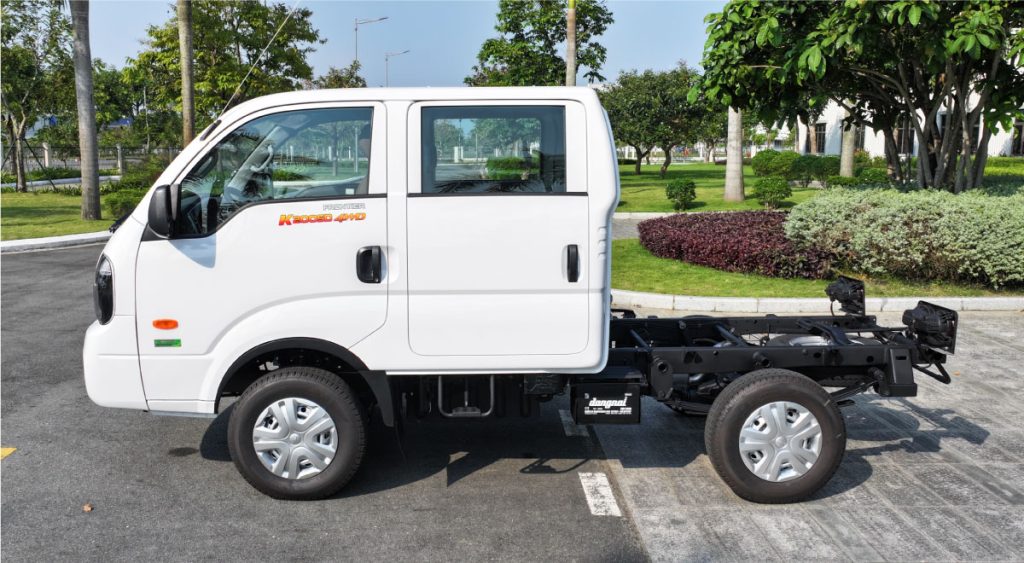 KIA Frontier K200SD-4WD là phiên bản nâng cấp cao hơn của K200S-4WD, được thiết kế đặc biệt để phục vụ những nhu cầu vận tải đòi hỏi khả năng chịu tải tốt hơn, vận hành ổn định ở địa hình phức tạp như vùng núi, công trường khai thác, nông lâm nghiệp với cabin đôi (6 chỗ ngồi). Cụm “SD” (Super Duty) thể hiện bản chất “hạng nặng” của mẫu xe này: mạnh mẽ hơn, chắc chắn hơn, gầm cao và khung gầm cứng cáp hơn.