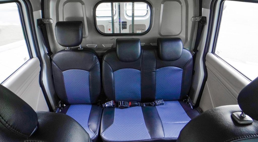 Ghế ngồi bọc da Simili, êm ái và dễ vệ sinh.